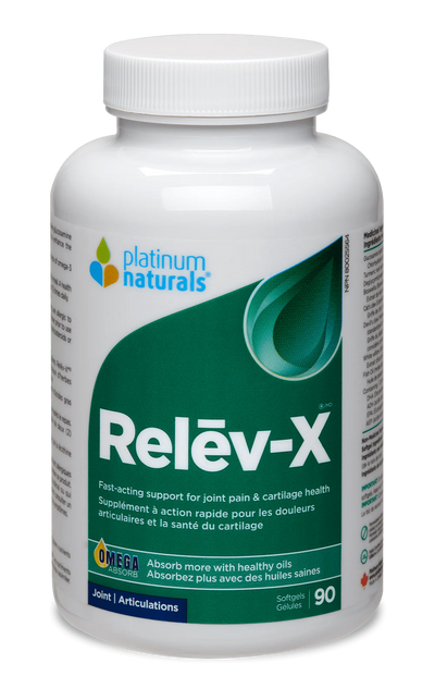 Relev-X provides fast and effective joint pain relief. Relev-X contains glucosamine for healthy cartilage and a combination of anti-inflammatory herbs to enhance the pain-relieving effects. Made with Superior Nutrient Absorption: nutrients protected in healthy oils enable your body to absorb more of what it needs throughout the day.